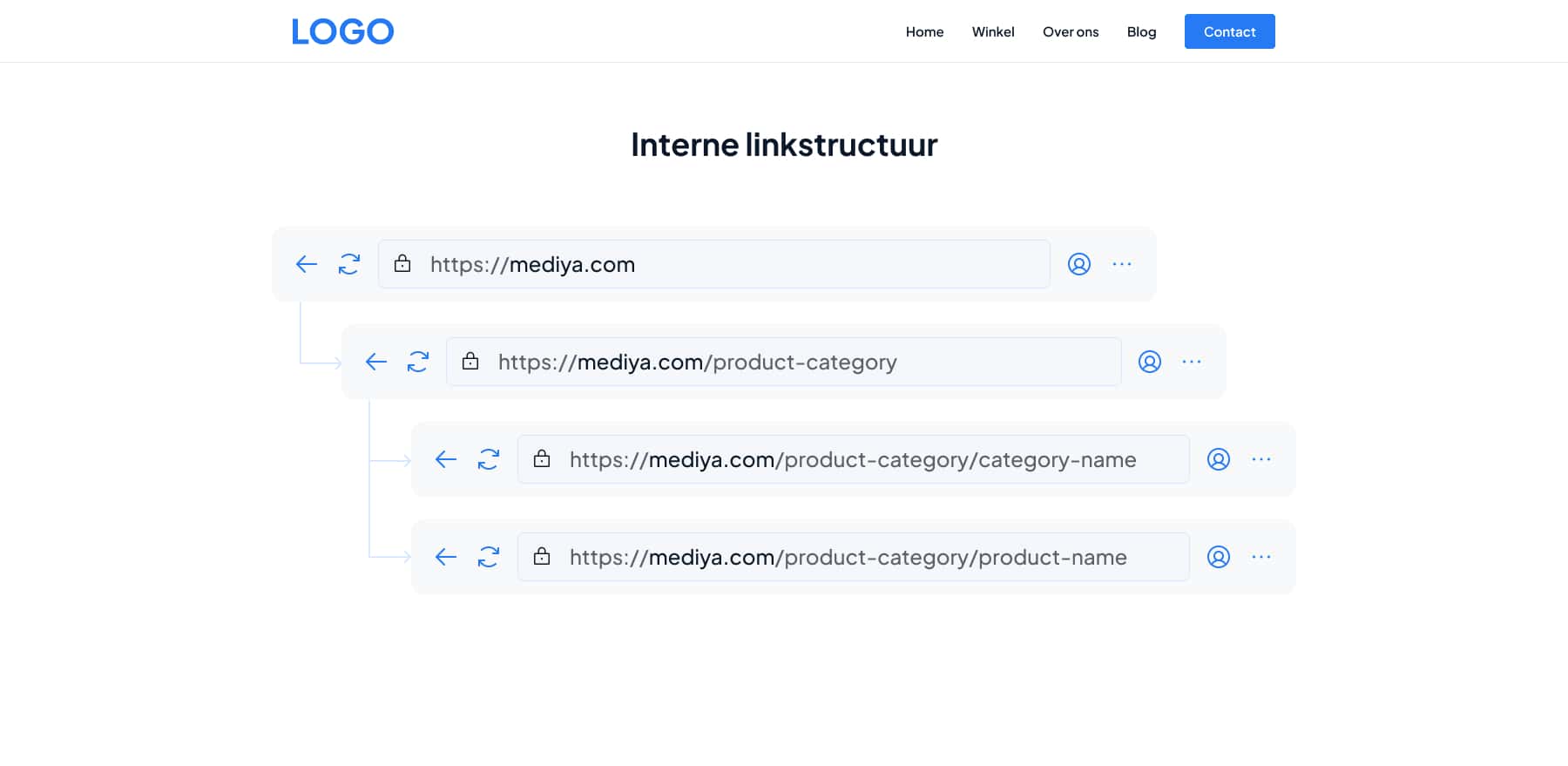 - Zorg voor een logische organisatie: Zorg ervoor dat je het de klant zo makkelijk mogelijk maakt om zijn of haar informatie te vinden. Dit zorgt er niet alleen voor dat de klant jouw website begrijpt, maar ook zoekmachines begrijpen zo jouw website beter. Het is verder altijd van belang dat je duidelijke koppen en subkoppen gebruikt om de tekst overzichtelijk te maken.